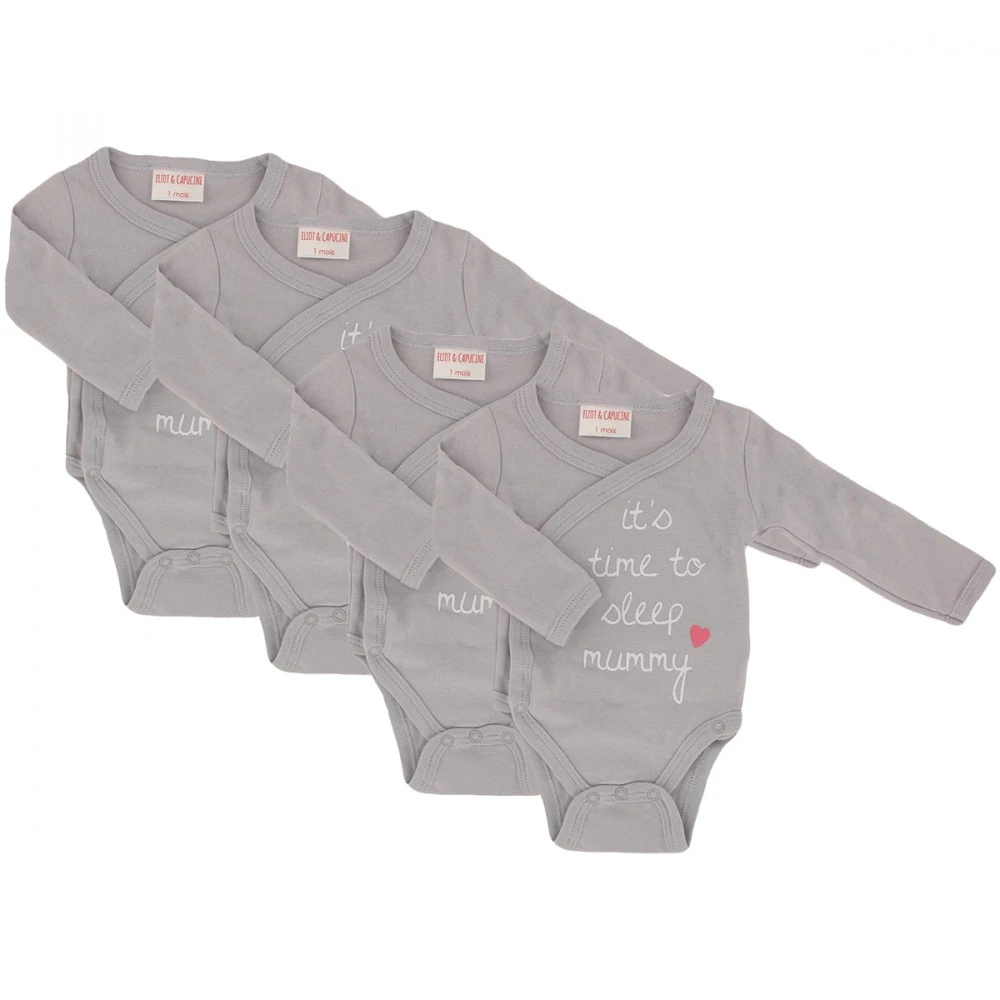 Body Bébé/Naissance manches longues avec motifs. Lot de 4 pièces, coloris Fille. Ouverture pressions entrejambe et côté. Disponible de la taille 1 mois à 12 Mois. Composition: 100% Coton. Lavable en machine à 30°C.