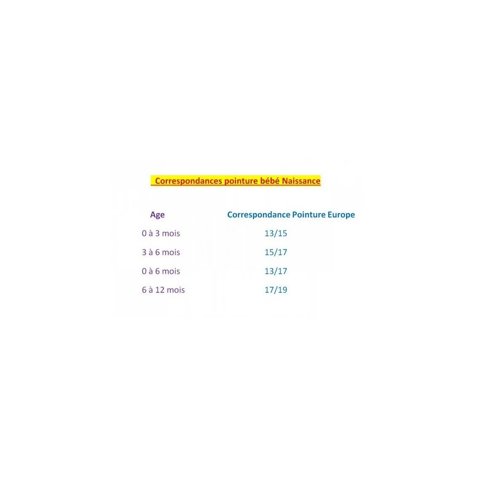 – Tailles : 19/22 23/26 27/30, 31/34 35/38 36/41