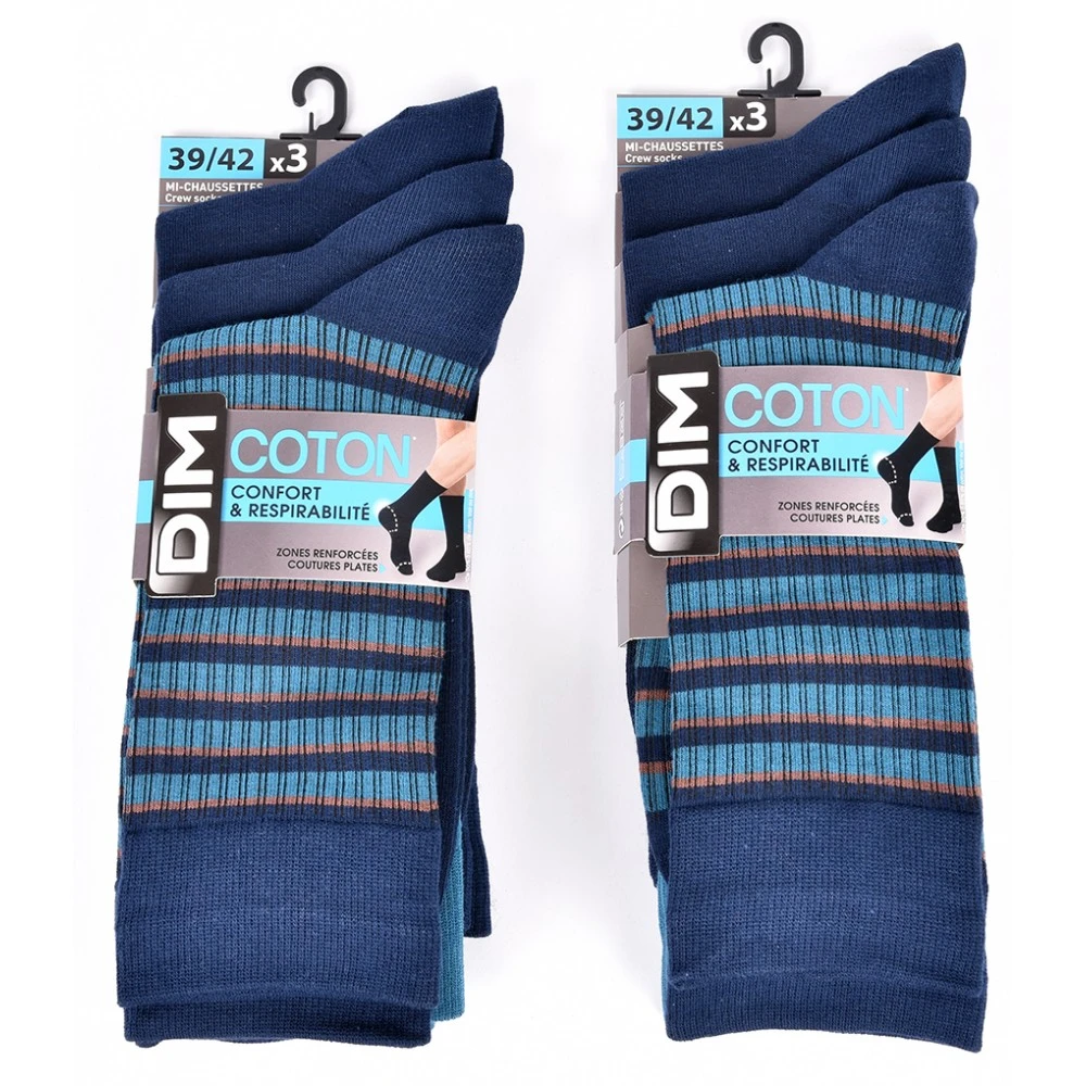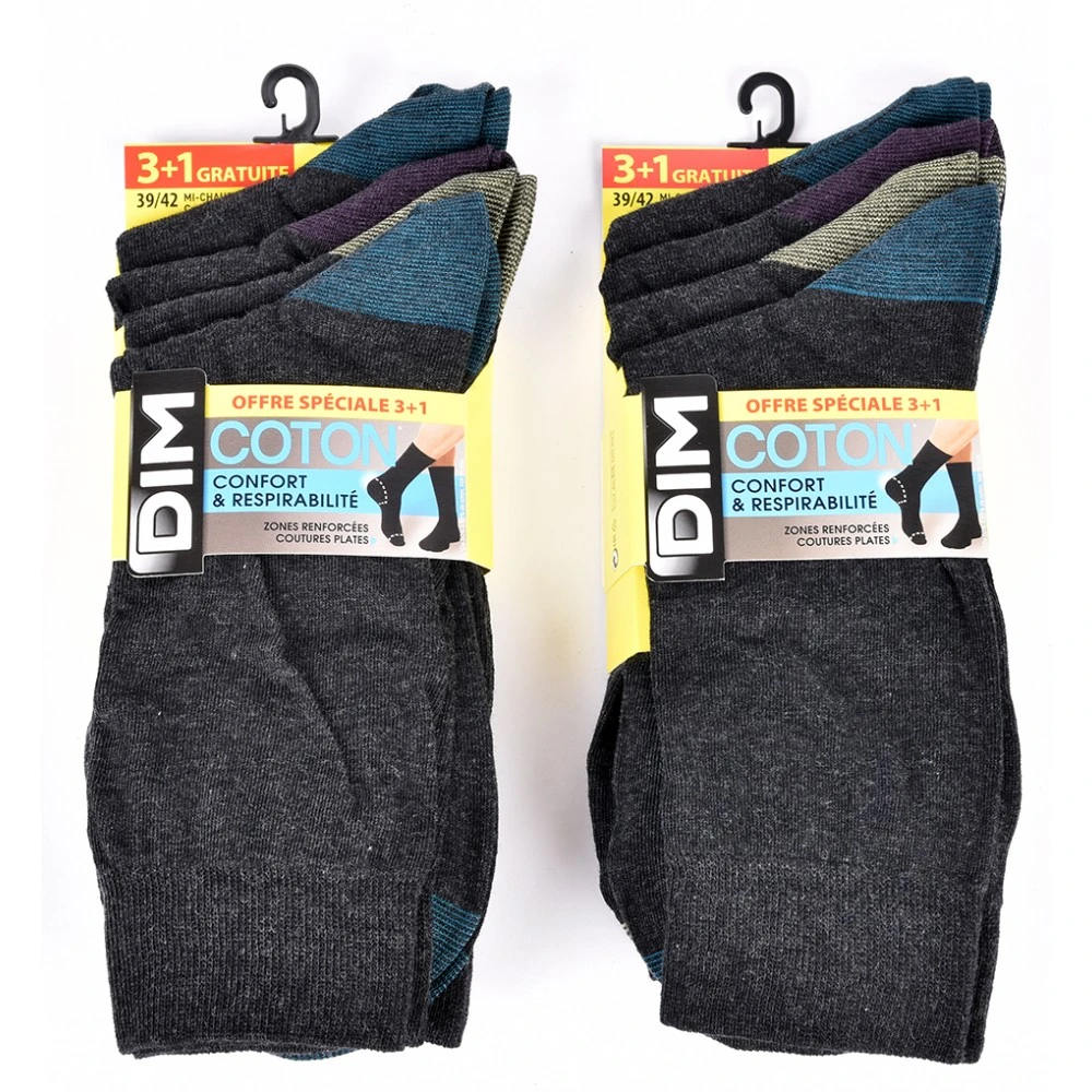 Chaussettes pour homme DIM Vendu en Pack. Ce dernier est composé d’un assortiment des modèles présentés sur la photo selon les arrivages du moment.