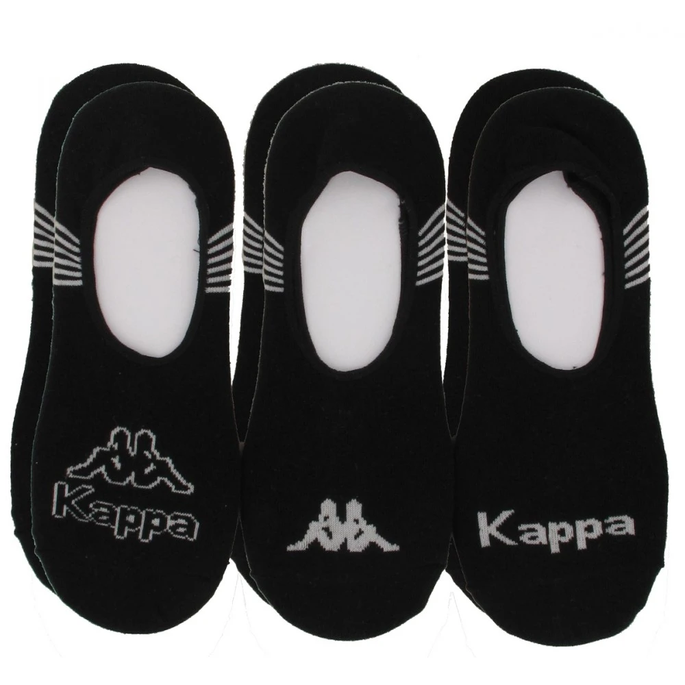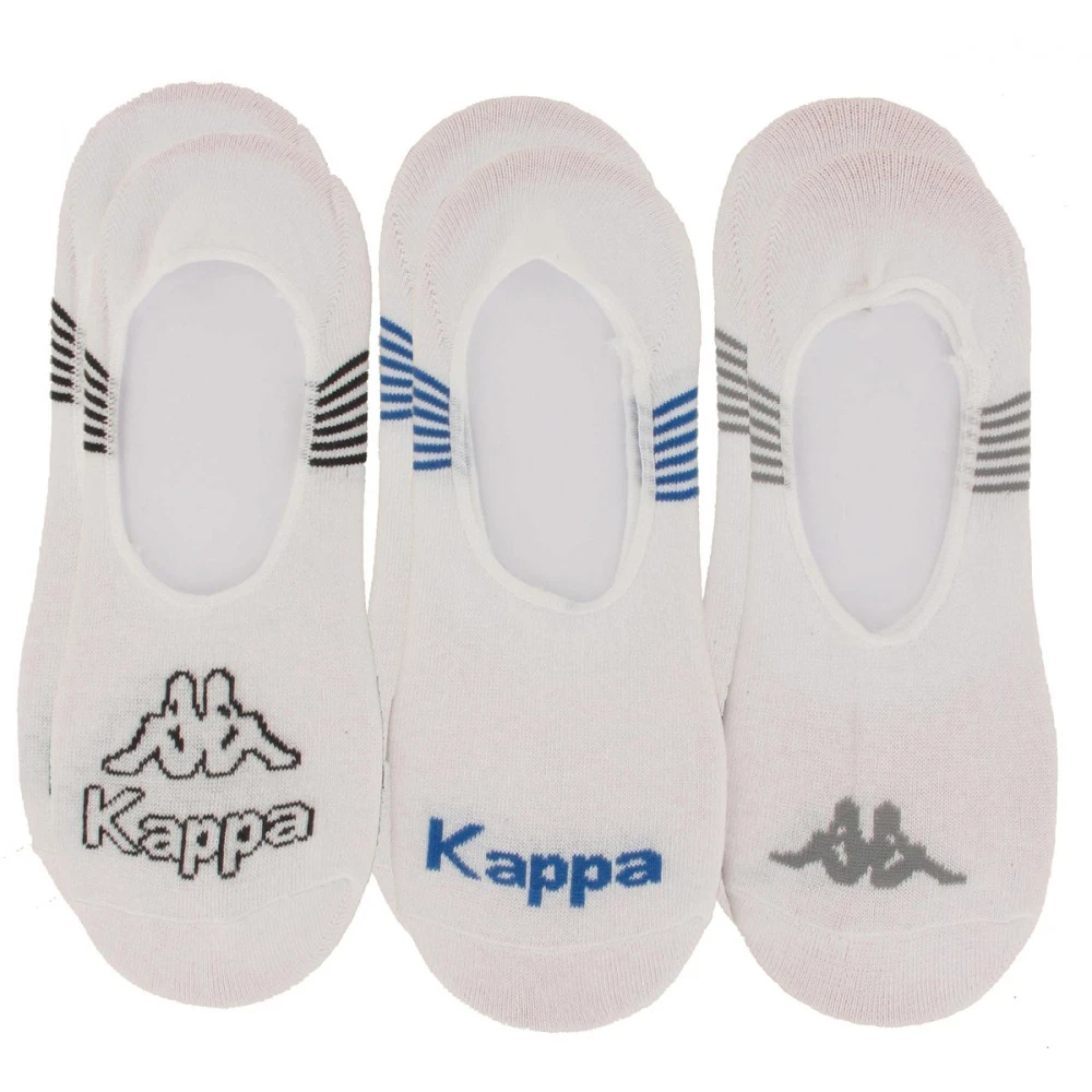 Chaussettes invisibles Homme.Lot de 6 avec motifs KAPPA.Existe en 2 Lots différents. Soit 6 paires fond Blanc ou 6 paires fond Noir. Disponible en tailles 39/42 et 43/46.Composition: 69% Coton – 29% Polyester – 2% Elasthanne.Lavable en machine à 30°C.