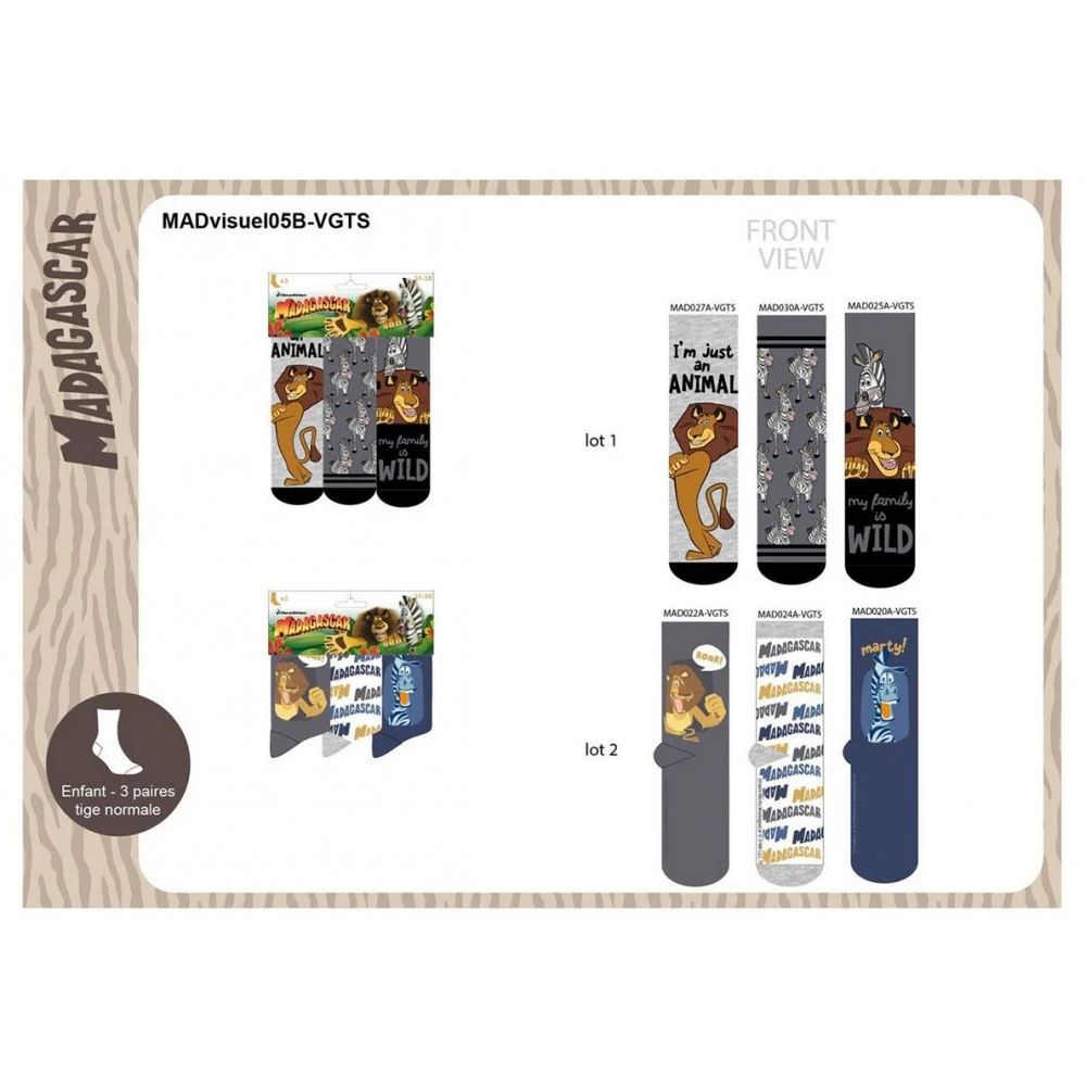 Offrez un cadeau original avec ce Pack de chaussettes LICENCE MADAGASCAR