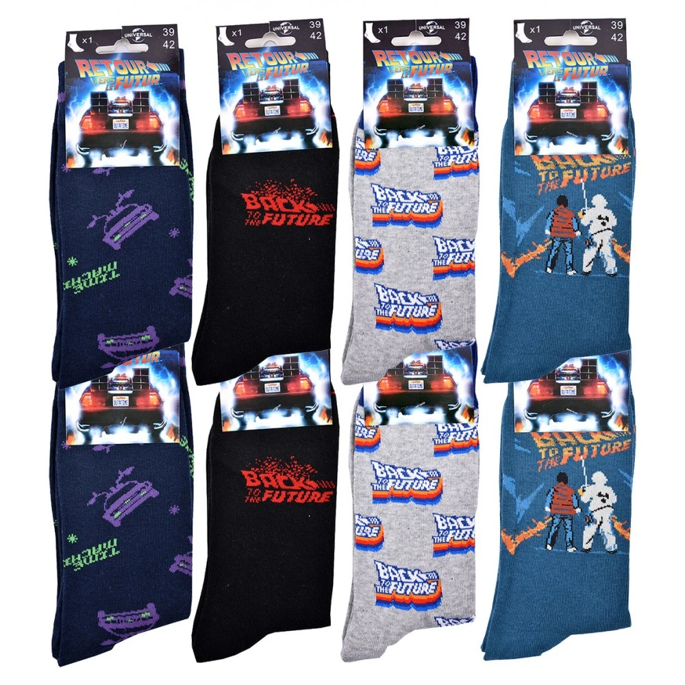| BULLET 4 Retrouvez tous vos héros préférés de séries films dessins animés de la firme RETOUR VERS LE FUTUR personnages représentés sur nos chaussettes sous licence pour apporter une touche de fantaisie dans votre quotidien |