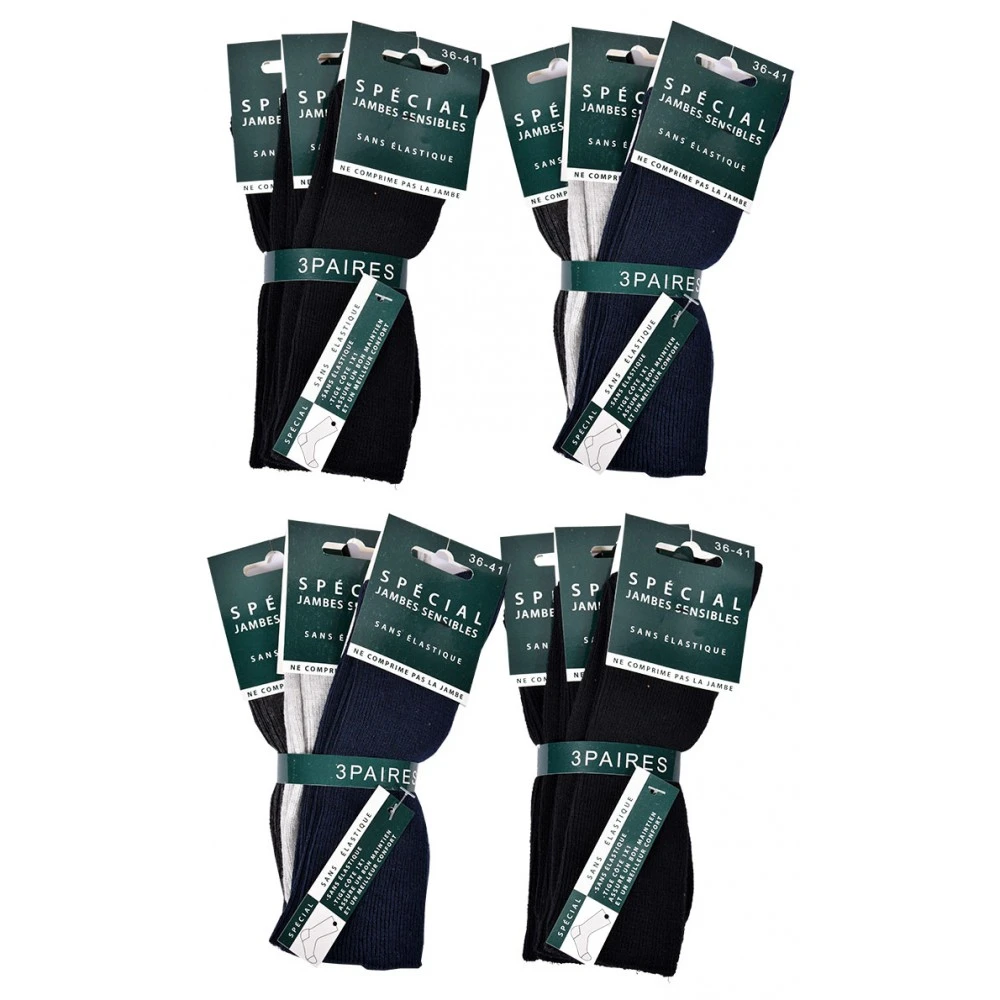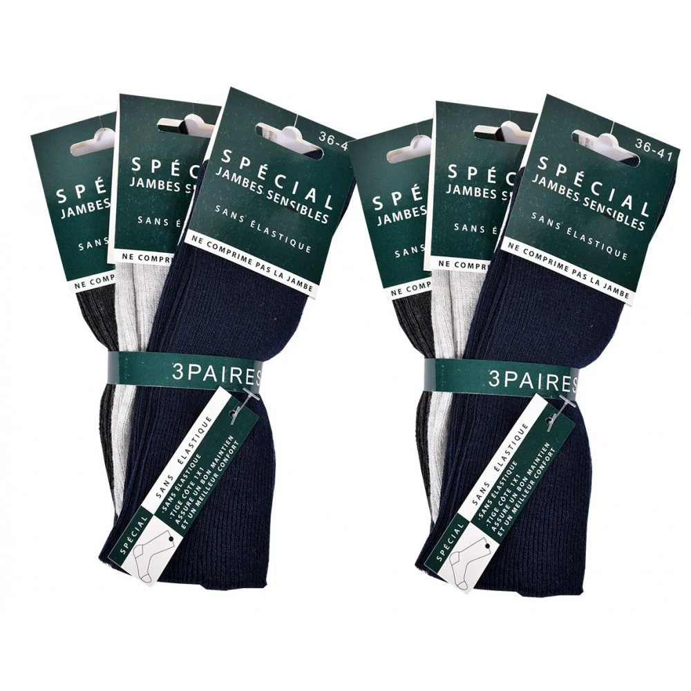 Ces chaussettes sans élastique pour femme vendues en pack sont spécialement conçues pour les jambes sensibles.