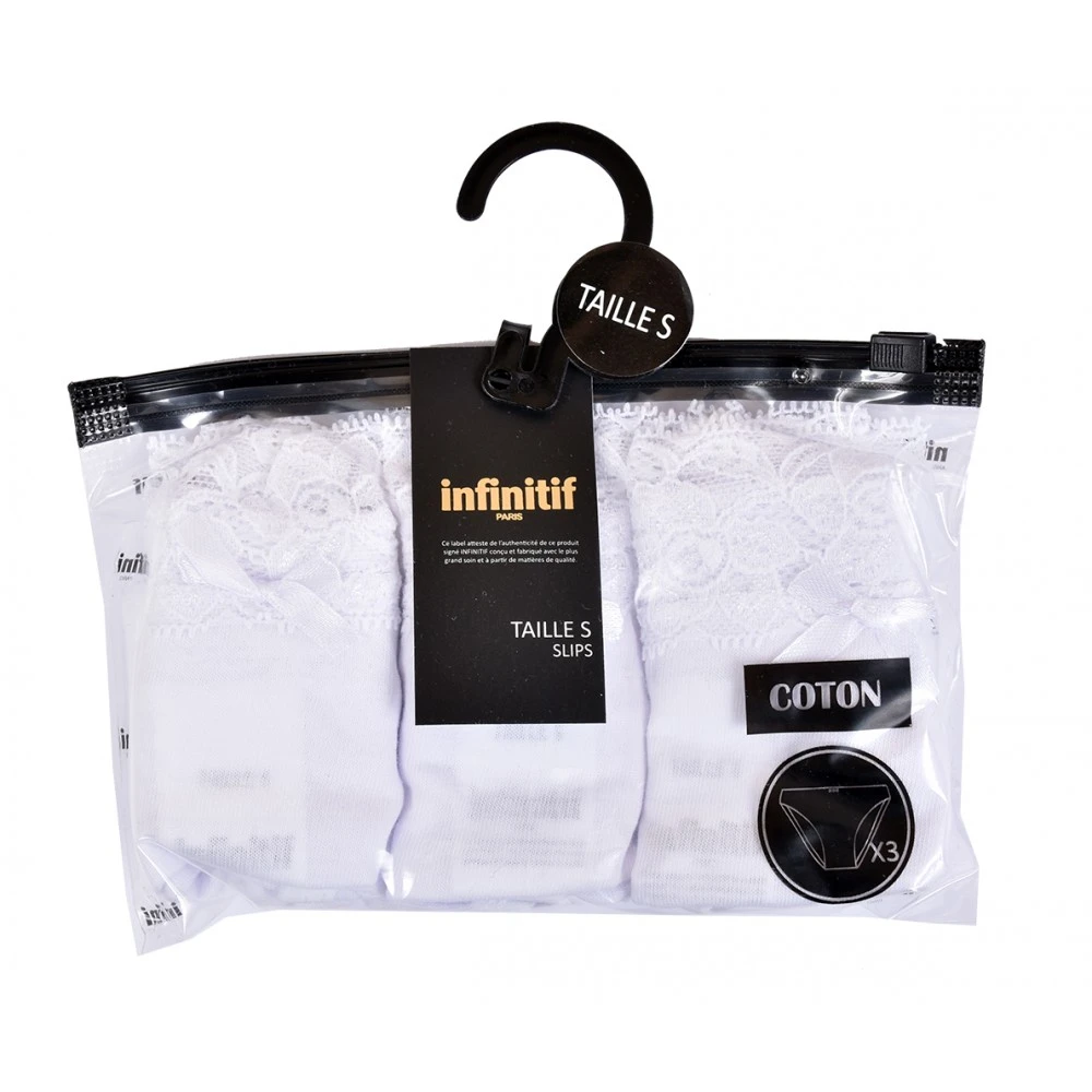 | Couleurs | Multicolore, Pack de 9 Jersey Dentelle, Pack de 3 Jersey Dentelle Noires, Pack de 5 INFINITIF Unies Blanches, Pack de 5 INFINITIF Unies Noires, Pack de 5 INFINITIF Unies Assorties, Pack de 6 Culottes INFINITIF 0590 |