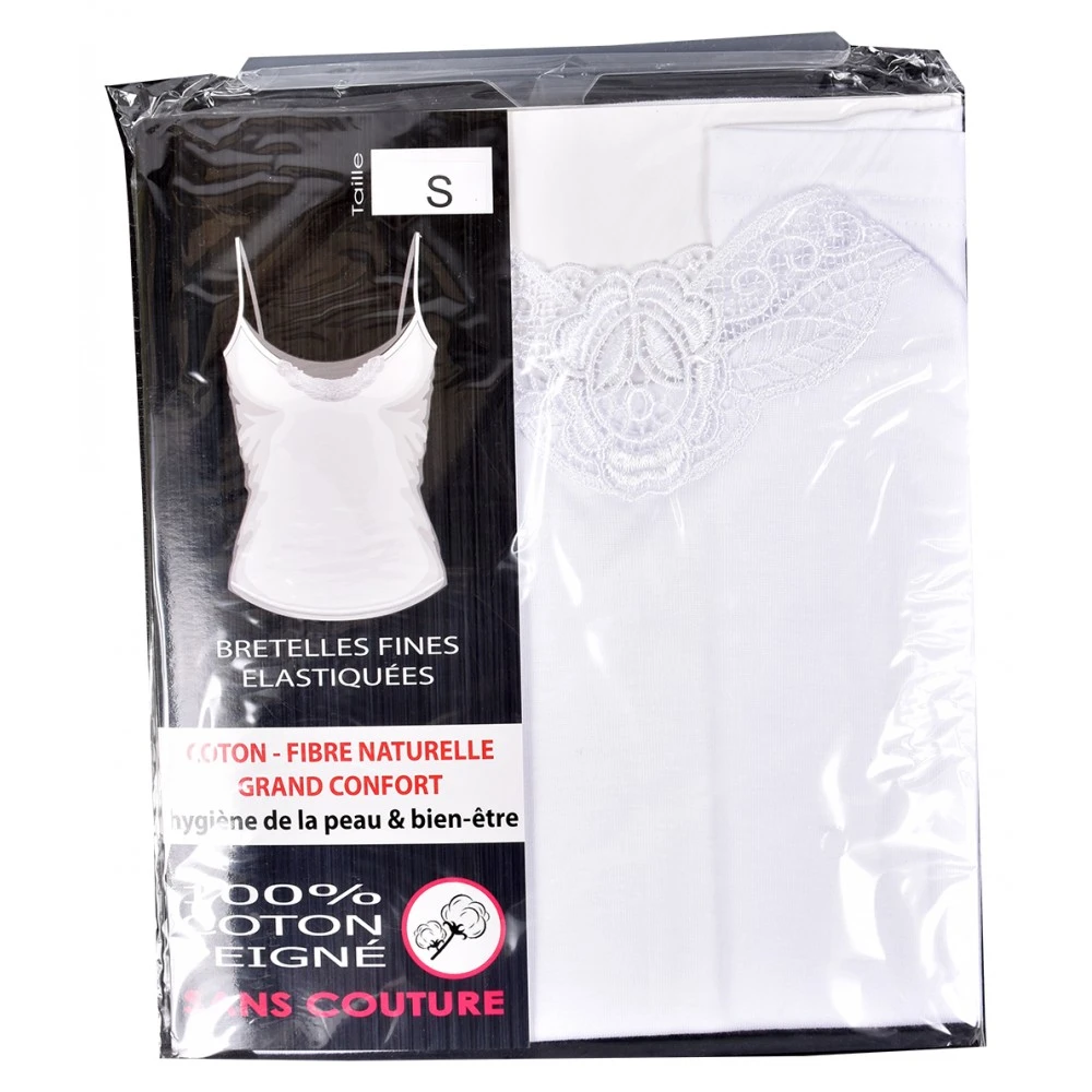 Le débardeur à fines bretelles ajustables pour femme, en Coton 100% Peigné vous propose un confort et une tenue exceptionnelle, même dans la durée.