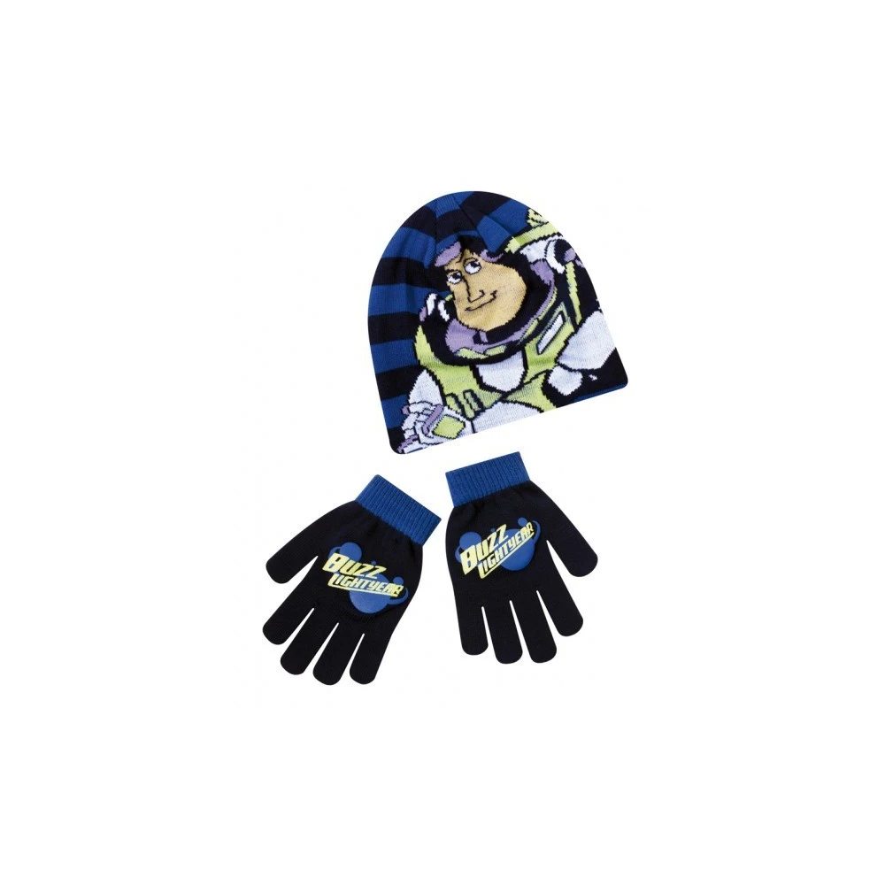 Le set bonnet et gant Disney pour garçon en maille jersey est composé de 70% d’Acrylique et de 30% de Polyamide. Ce lot Toy Story à l’effigie de Buzz l’éclair est disponible en Bleu et noir et uniquement en taille unique.