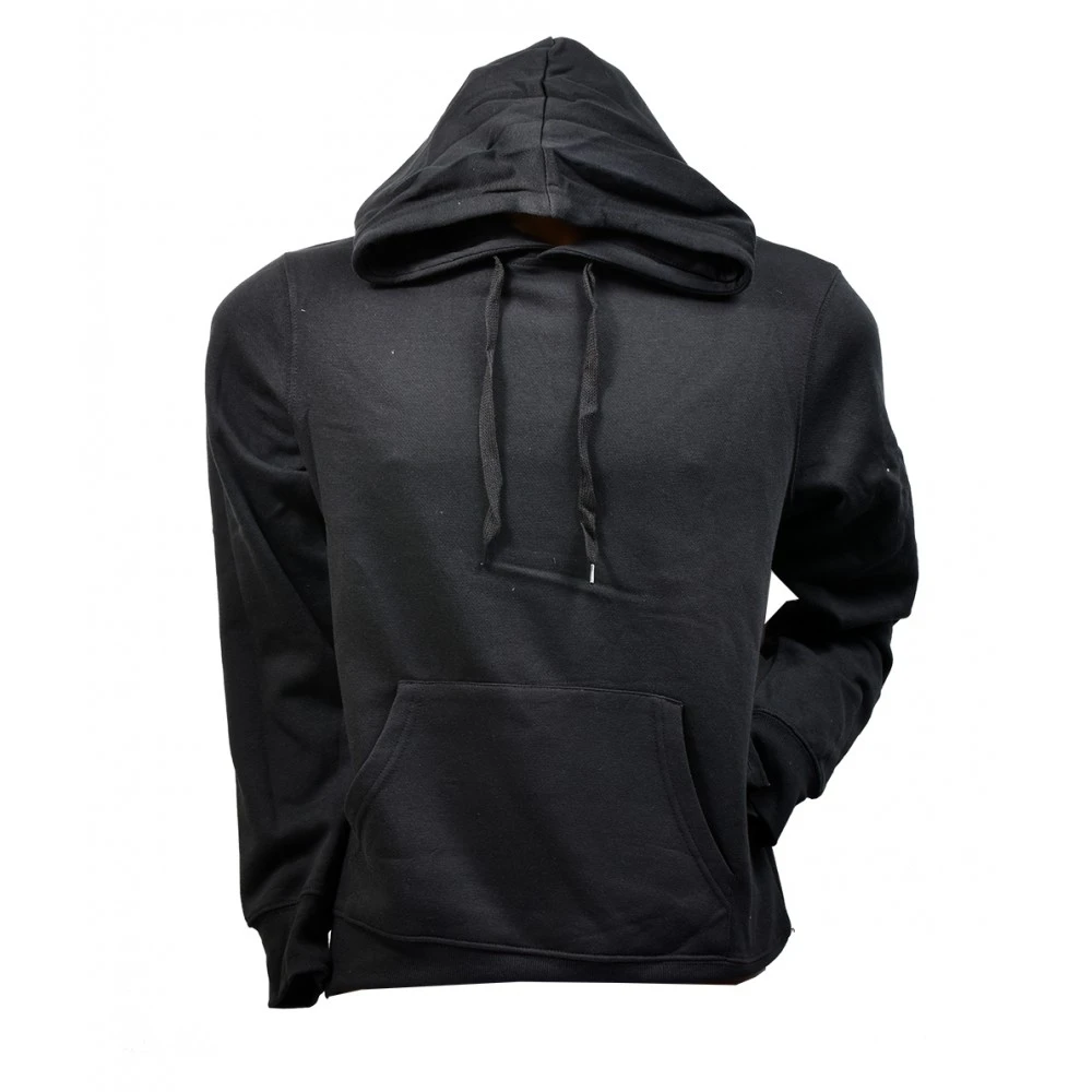 Capuche doublée, cordons de serrage ton sur ton, 2 poches latérales.